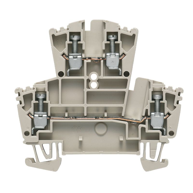 Abschlussplatte für den Berührungsschutz an spannungsführenden Teilen von Reihenklemmen. Die Abschlussplatte wird auch zur optisch erkennbaren Trennung von Stromkreisen eingesetzt, um Verdrahtungsfehler zu vermeiden.
