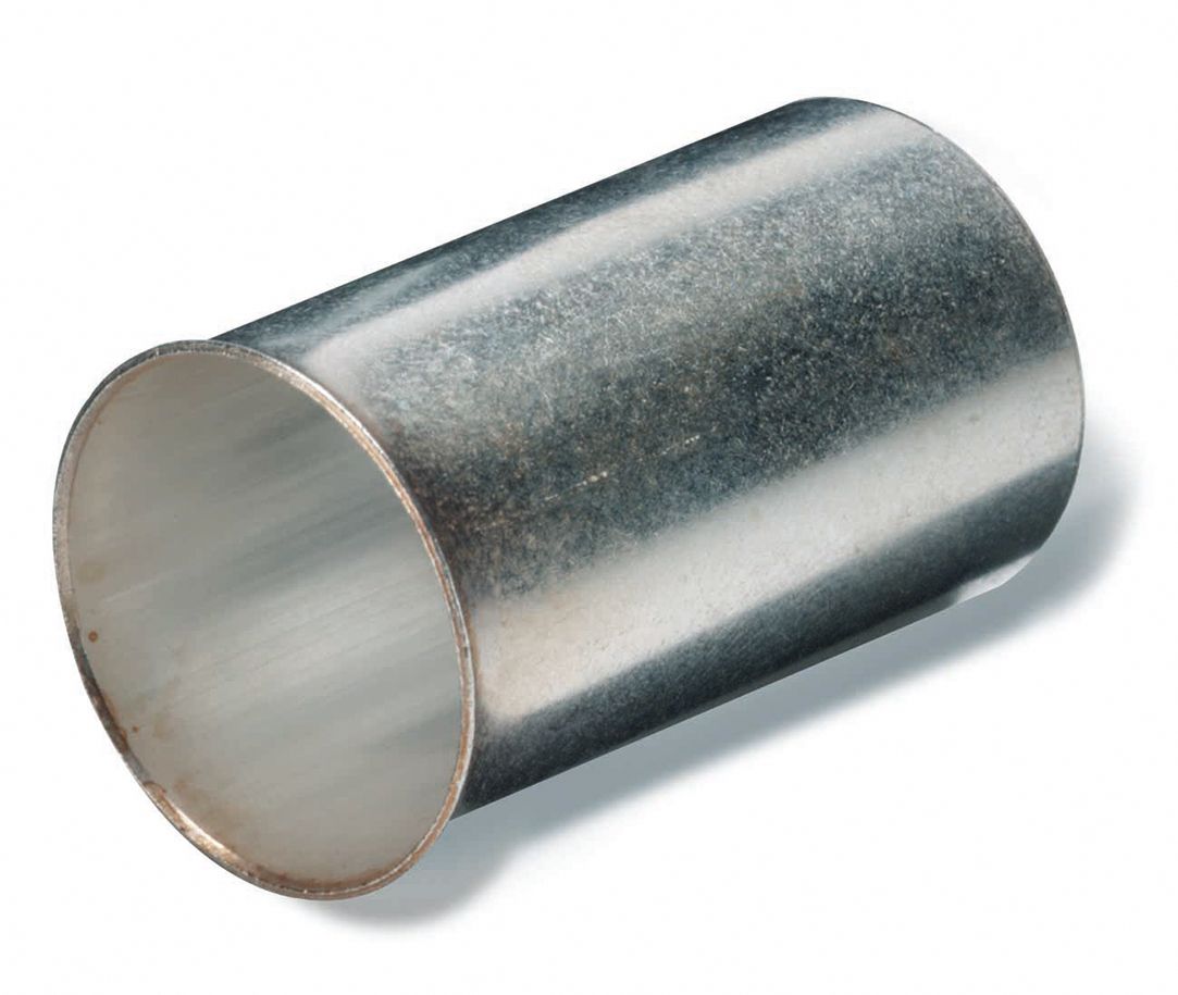 Aderendhülse ohne Isolation, aus Elektrolyt-Kupfer, Oberfläche galvanisch verzinnt, nach DIN 46228 Teil 1.