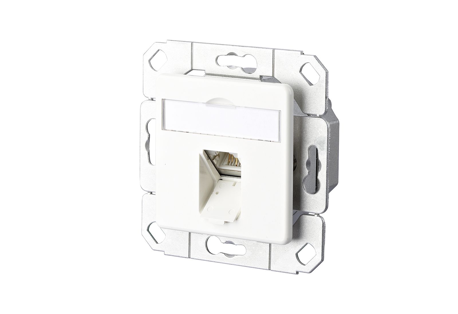Anschlussdose, Cat.6A, für den Einbau in den Standard-Unterputzbecher. Einhaltung Class EA bis 500 MHz, getestet bis 800 MHz. 10 GBit Ethernet geeignet. Cat.6A Komponentenprüfung, GHMT zertifiziert. Vollgeschirmte Ausführung. Aderndurchmesser: 0,409-0,63 mm. Vom Schirmanschluss getrennte Zugentlastung unverlierbar. Zum Anschluss von Kategorie 6A, 7 und 7A Kabeln mit Zuführung in einer von acht möglichen Richtungen. Großräumige und optimierte Kabelzuführung. Designfähig zu vielen Schalterprogrammen mit Zentralstücken passend zu Schalterprogramm nach DIN 49075. Montagetechnik: Unterputz, mit Metallring, mit Zentralstück, ohne Abdeckplatte, geeignet für Remote Powering (PoE, PoE plus, UPoE und 4PPoE) HDBaseT, SAT-IP und AVoverIP.