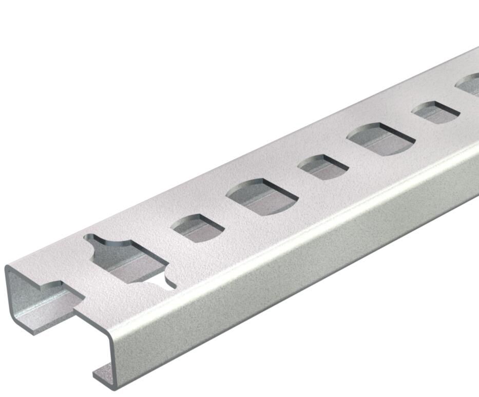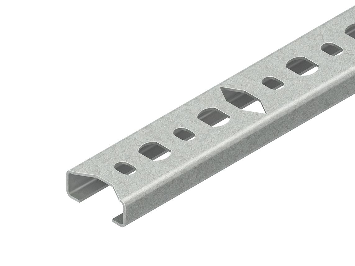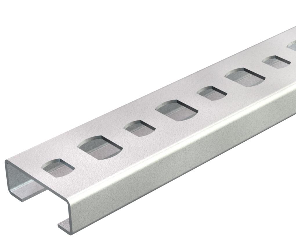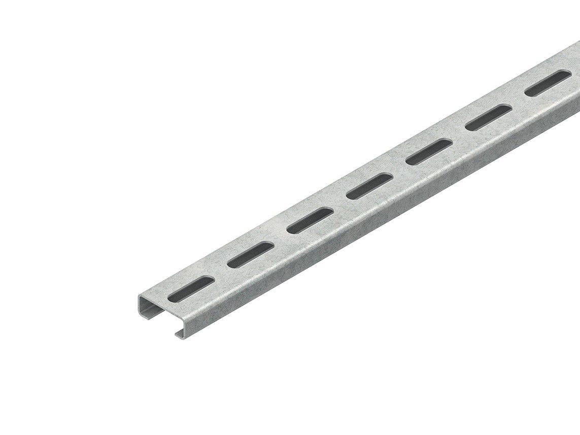 C-Profilschiene, Träger zur Kabel- oder Rohrführung. Geeignet zur Verwendung mit den Rohrschellen ERS 16 - ERS 40. Gelocht, Sollbruchstelle alle 10 cm, Länge 2 m, Stahl, bandverzinkt, Maße: BxH 20 x 8 mm, Materialstärke: 0,75 mm, Schlitzbreite: 11,0 mm, Lochform: Langloch. VPE-Angabe in Metern (m).