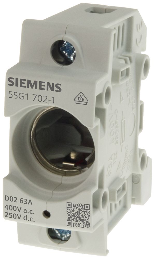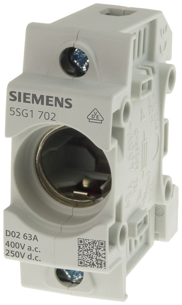 NEOZED, Sicherungssockel, D02, 3-polig, 63 A, Un AC: 400 V, Un DC: 250 V ohne LED-Signalmelder mit Rahmenklemme NEOZED-Sicherungssockel SENTRON 5SG5 für das bewährte D0-System. Als wichtiger Bestandteil der SENTRON Schutzkomponenten für die Elektroinstallation bietet das NEOZED Sicherungssystem effektiven Personen-, Geräte- und Anlagenschutz durch sicheres Abschalten im Überlast- und Kurzschlussfall. Durch die sehr kompakte Bauform ist der Platzbedarf besonders gering. Es steht ein breit gefächertes Programm an Sicherungssockeln und Zubehör zur Verfügung, das die Anwendungsmöglichkeiten in vielen Bereichen erhöht. SENTRON Schutzschaltgeräte - Eine sichere Wahl.
