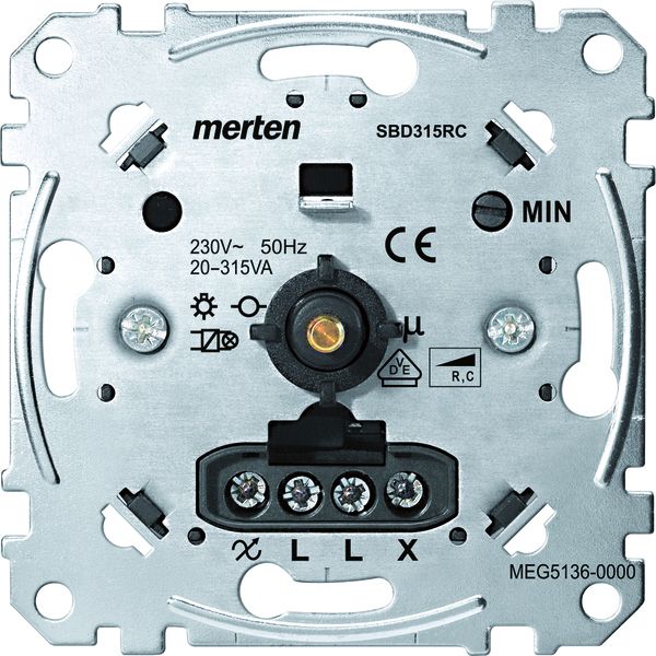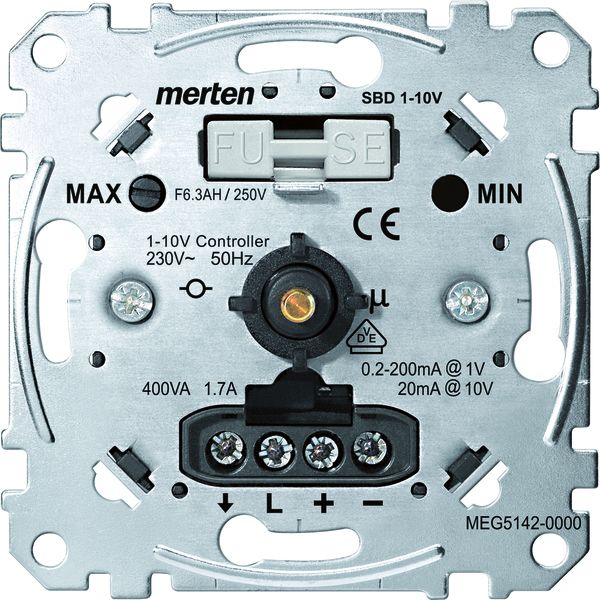 Im Design System M. Zu komplettieren mit Universal-Drehdimmer-Einsatz für LED-Lampen MEG5134-0000. Universal-Drehdimmer-Einsatz MEG5138-0000, MEG5139-0000. Drehdimmer-Einsatz für kleine Lasten MEG5140-0000. Drehdimmer-Einsatz für ohmsche Last mit Druck-Ausschalter MEG5131-0000. Drehdimmer-Einsatz für ohmsche Last mit Druck-Wechselschalter MEG5132-0000. Drehdimmer-Einsatz für induktive Last MEG5133-0000, MEG5135-0000. Drehdimmer-Einsatz für kapazitive Last MEG5136-0000, MEG5137-0000. Elektronik-Potentiometer-Einsatz 1-10 V MEG5142-0000. Material Thermoplast edelmatt. Farbe aluminium.