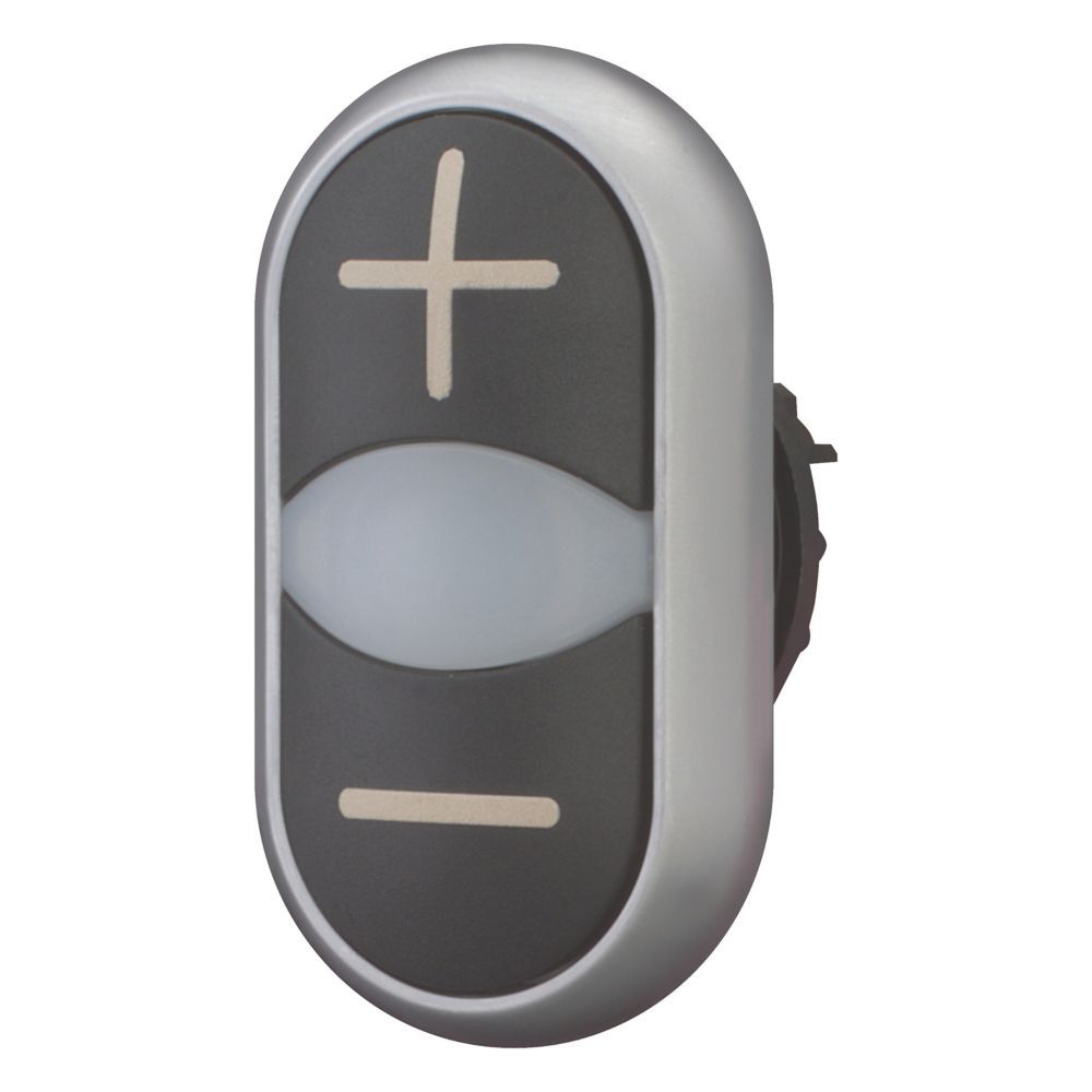 Doppeldrucktaste, Sortiment: RMQ-Titan, Einzelgerät, Bauform: Tasten und Leuchtmelder vorstehend, tastend, Beschreibung: Vorsatzlinse weiß, Tastenplatte: grün, rot, Tastenplatte beschriftet, Schutzart: IP66, Frontring Titan, Anbindung an SmartWire-DT: ja, mit RMQ-SWD-Anschaltungen, Frontabmessung: 29,7 x 54,7, Normen und Bestimmungen: IEC/EN 60947, VDE 0660