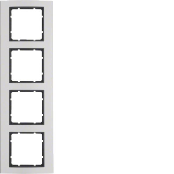 Der 2-fache Rahmen B.3 in Alu/anthrazit matt ist aus eloxiertem Aluminium gefertigt und eignet sich für die senkrechte sowie waagerechte Montage. Dieser Rahmen wird in Installationsschalterprogrammen wie bei Berker verwendet, um Steckdosen oder Schalter elegant zu integrieren. Das Material ist halogenfrei, was eine höhere Brandsicherheit gewährleistet. Der Rahmen kombiniert hohe Funktionalität mit modernem Design und ist für Unterputz-Einsätze konzipiert.