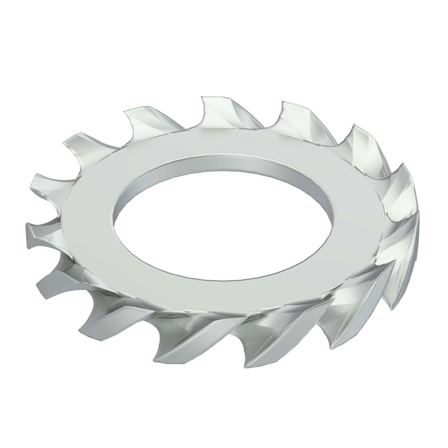 Fächerscheibe, Form A, außenverzahnt, Federstahl verzinkt, DIN 6798. Verwendbar mit metrischen Schrauben und / oder Muttern.
