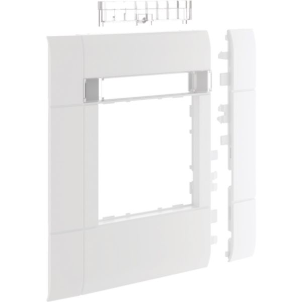 Rahmenblende 55 modular OT 80, halogenfrei, verkehrsweiß, für Brüstungskanal. Anreihbar, 71 mm Kombinationsabstand, für Zentralscheiben 55 x 55 mm. Integriertes Beschriftungsfeld, kompatibel mit 9 mm Beschriftungsbändern. Reduziert Schmutzablagerungen, vereinfacht die Reinigung. Kombinierbar mit Steckdosenblende.