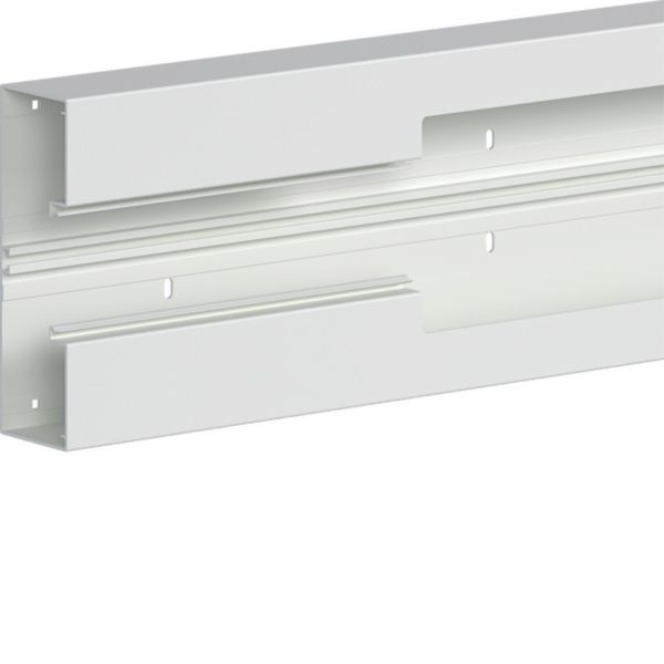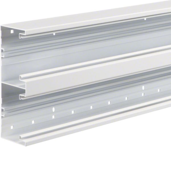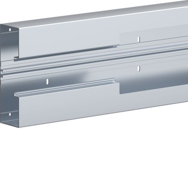 Entdecken Sie das passende Brüstungskanal-Unterteil BR aus eloxiertem Aluminium für Oberteile 80 mm. Dieses Unterteil ist die ideale Lösung für Brüstungskanalsysteme und bietet Platz für 10 bis 24 Kabel und Leitungen, je nach Ausführung. Der 68x100x2000 mm große Brüstungskanal ist halogenfrei und hat die Schutzart IP40. Mit Bodenlochung zur direkten Wandmontage. Durch die zusätzliche Rechtecklochung lässt sich der Kanal werkzeuglos mittels Clips auf Konsolen befestigen. Das ist echt Hager!