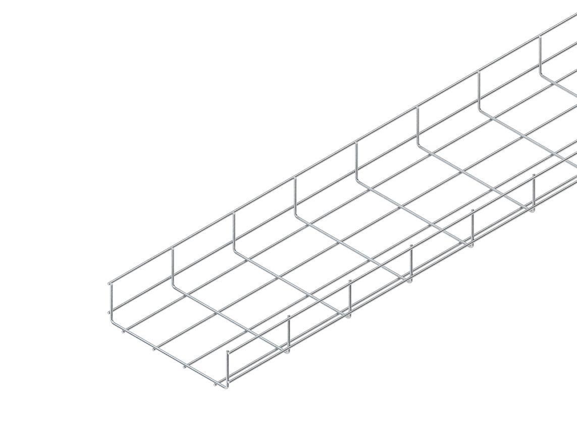 Gitterrinne nach DIN IEC 61537, U-förmig, aus Stahldrähten, punktgeschweißt. Stoßstellenverbinder bitte gesondert bestellen. Abmessungen (ca. Maße) Nennmaße Höhe H (außen) x Breite B (außen) : 60 x 100 mm Längsdraht-Ø : 3,5 mm Bodenlängsdrahtabstand : 50 mm Seitenlängsdrahtabstand : 41 mm Querdraht-Ø : 3,5 mm Querdrahtabstand : 100 mm Lieferlänge L : 3000 mm Nutzbarer Querschnitt : 4558 mm² geeignete Verbinder : 2 x GRVS 4 E3 je Lieferlänge Werkstoff : Edelstahl, Werkstoff Nr. 1.4301, AISI 304
