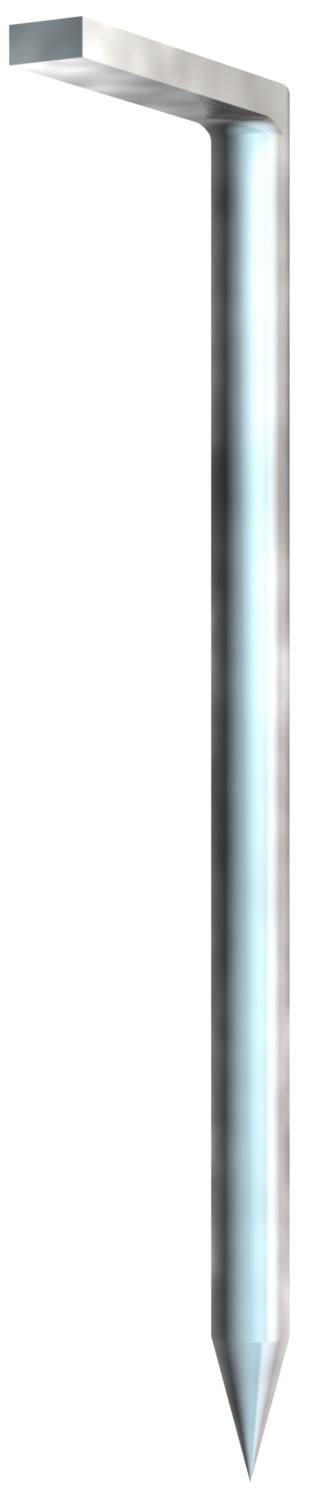 Hakennagel ungehärtet mit glattem und rundem Schaft, blau angelassen. Zur Befestigung von Rohren, Leitungen und / oder Rahmen.