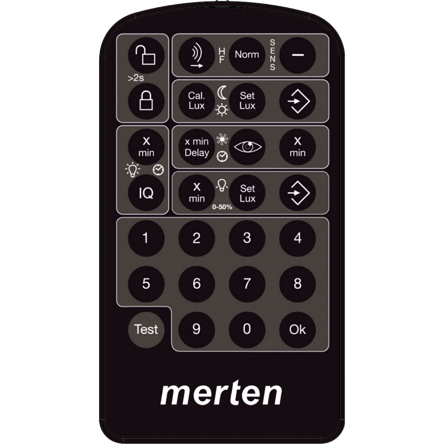10-Kanal IR-Fernbedienung. Zur Ansteuerung aller TELE-Sensorflächen, Jalousie-Taster mit IR-Empfänger, Präsenzmelder mit IR-Empfänger und KNX-Geräte mit IR-Empfänger. Batterie 2 Microzellen (IEC LR 03, AAA). Reichweite bis zu 12 m. Lieferumfang Ohne Batterie. Farbe weiß/schwarz.