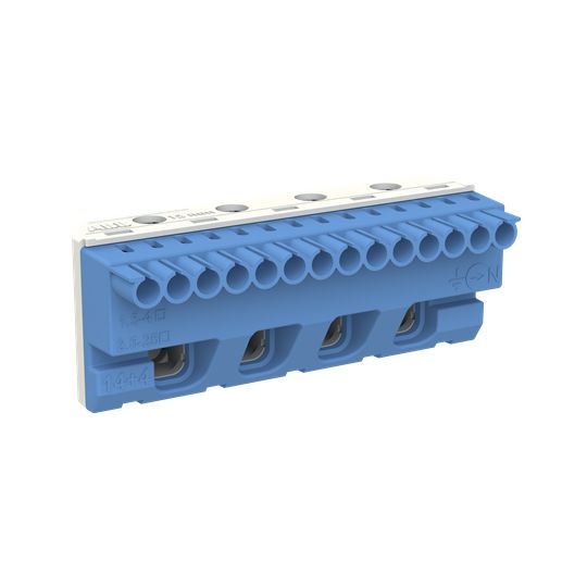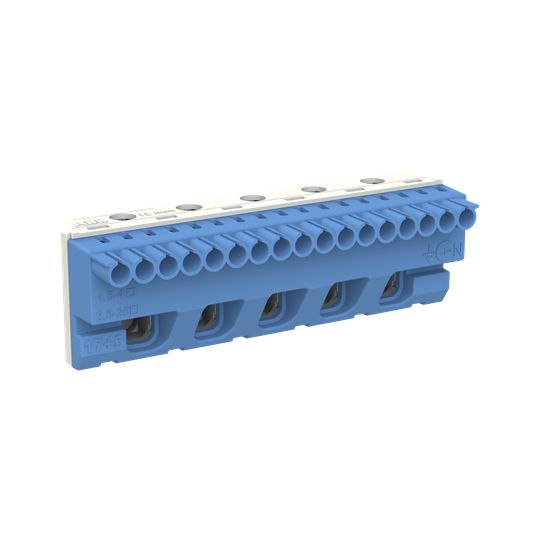 N Quick-Steckklemme für Quick-Steckträger, werkzeuglose Montage durch einfache Steck- und Rasttechnik, klare Farbcodierung: N = blau, flexibles Klemmensystem für mehrere N-Stromkreise, Anzahl der Klemmen: 8 x 1,5 - 4 mm² (Federklemmtechnik) + 2 x 2,5 bis 25 mm² (Schraubanschlusstechnik), Außenmaße H x B x T in mm: 32 x 49 x 31, einfaches Beschriften der Klemmenstellen (DIN VDE 0603 Teil 1) mit vorgedruckten, selbstklebenden Zahlenstreifen.