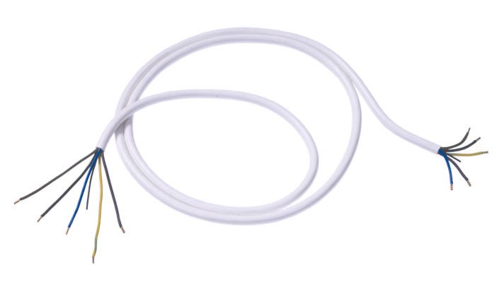 Herdanschlußleitung H05VV-F 5G2,5mm² Länge: 2,0m Farbe: Weiß Seite 1: Aderendhülsen abgemantelt 50mm Seite 2: Aderendhülsen abgemantelt 110mm grün-gelber Schutzleiter,140mm lang im 10er Bündel
