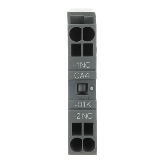 Die Hilfskontaktblöcke werden bei der Schaltung von Hilfsstromkreisen und Steuerstromkreisen in Standardindustrieumgebungen eingesetzt. Typen von Hilfskontaktblöcken für frontseitige Montage: CA4 1 oder 4-poliger Block mit Sofort-Schließer- und Öffnerkontakten CC4 1-poliger Block, mit voreilendem Schließer und nacheilendem Öffner CAT4 2-poliger Block mit 1-Sofort-Schließer- und 1-Öffnerkontakt und Anschluss für A1 / A2 Spulenklemmen vorn. Wählen Sie die Art der 4-poligen CA4-..E, CA4-..M, CA4-..U oder CA4-..N Hilfskontaktblöcke für den jeweiligen Schütz- oder Hilfsschütztyp anhand der Standardanforderungen (siehe Kennzeichnung und Lage der Anschlussklemmen). Typen von Hilfskontaktblöcken für seitliche Montage: CAL4 2-poliger Block mit Sofort-Schließer- und Öffnerkontakten. Zum Anbau auf der rechten bzw. linken Seite des Schützes. Die Hilfskontaktblöcke mit im Lieferzustand offenen Schraubklemmen sind gegen versehentliches Berühren geschützt und
