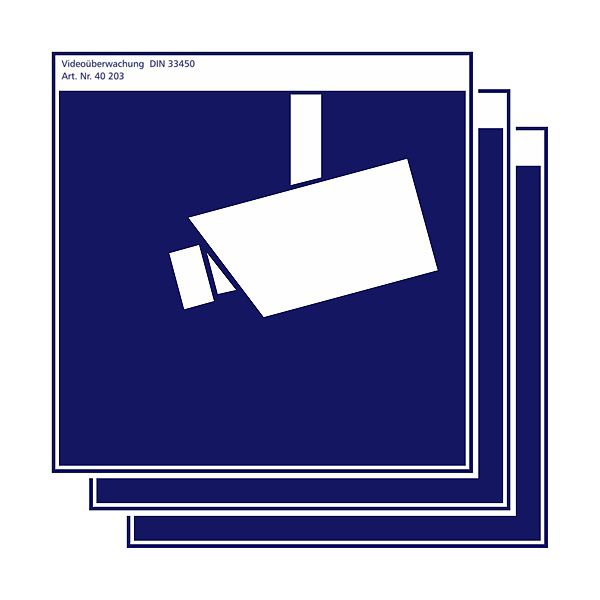 Warnaufkleber >Videoüberwachung<, Hinweise zur Videoüberwachung und zum Datenschutz (DSGVO, teilweise ausgefüllt), mit Piktogramm. Individuell mit einem Permanent-Stift beschriftbar (Stift wird nicht mitgeliefert). Zum Anbringen an glatten Oberflächen geeignet. Selbstklebende PE-Folie. Abmessungen: DIN A5 148 x 210mm.