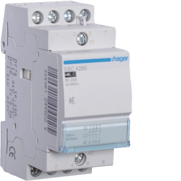 Hager Installationsschütz 25A 230V/AC 400V/AC 4S 1900W/AGL 950VA/LL 2TE