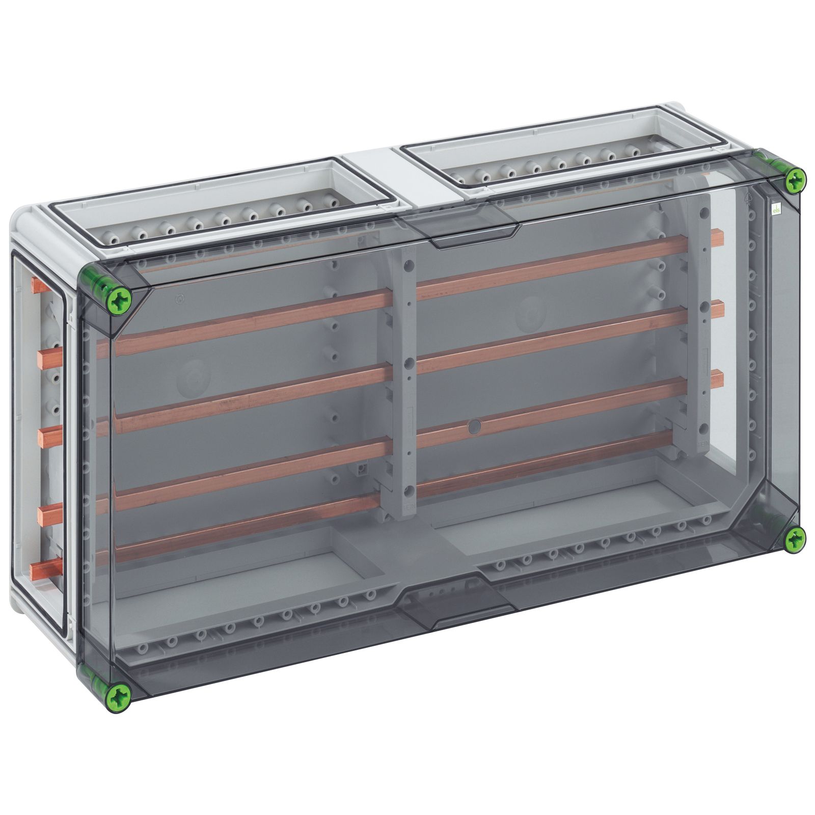 Kabeleinführung für Leitungen bis Ø 75mm, mit Zugentlastung für 1 Leitung, 2 x Flanschverbinder (GFV), 320mm, für 2 Leitungen Abmessungen: 277 x 42 x 122mm