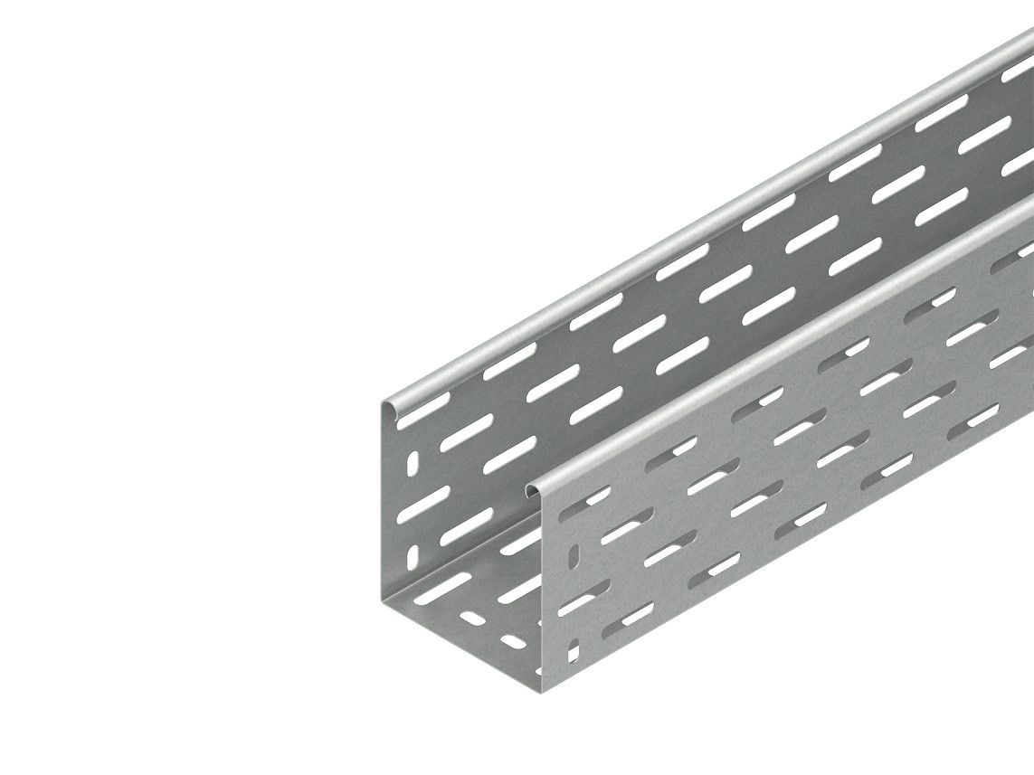 Kabelrinne nach DIN IEC 61537, mit versetzt angeordneter Boden- und Seitenperforation, einschließlich einstückigem U-förmigen Stoßstellenverbinder RV 110... und anteilmäßigem Befestigungszubehör. Abmessungen (ca. Maße) H x B : 110 x 200 mm Materialstärke t : 1 mm Lieferlänge L : 3000 mm Nutzbarer Querschnitt : 21800 mm² Werkstoff : Stahl, bandverzinkt nach DIN EN 10346