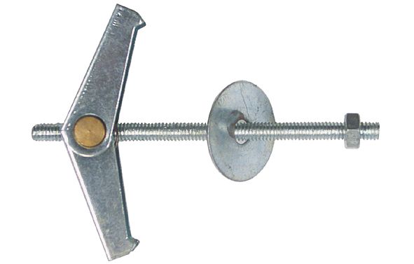 Kippdübel, Stahl, galvanisch/elektrolytisch verzinkt. Mit Gewindestange, Mutter und Unterlegscheibe.
