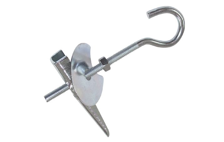 Kippdübel, Stahl, galvanisch / elektrolytisch verzinkt. Mit Deckenhaken, Mutter und Unterlegscheibe.