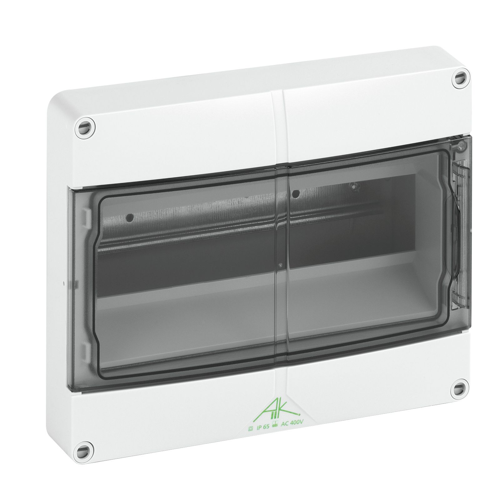 Kleinverteiler, mit Schutzart IP65, 1-reihig, 12 verfügbare Teilungseinheiten, Bemessungsbetriebsspannung: 400V AC, Bemessungsisolationsspannung: 1000V AC, 1000V DC, oben und unten metrische Vorprägungen für universelle Leitungseinführungen mit Kabelverschraubungen und / oder Doppelmembranstutzen, oben mit elastischen Einführungen DMS M20 vorbestückt, für die Standardinstallation im Innenbereich, mit PE/N-Klemmschiene mit jeweils 2 Klemmstellen 16mm² und 10 Klemmstellen 6mm² Abmessungen: 250 x 200 x 122mm Beigefügtes Zubehör: Doppelmembranstutzen: 1x M20, 1x M32, Verschlussstopfen, Abdeck- und Beschriftungsstreifen