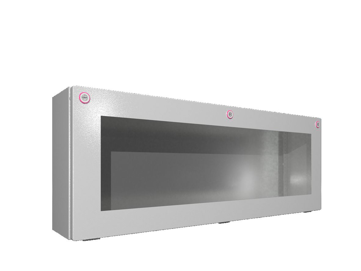 KX Bus-Gehäuse, BHT: 600x300x155 mm, Stahlblech, mit geschlossenem Boden, mit scharniertem Deckel,und Sichtscheibe