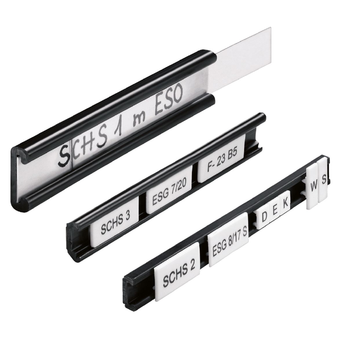 Halter für Gerätemarkierer zur Gerätekennzeichnung. Die Befestigung der Halter kann durch Schrauben, Kleben oder durch Kabelbinder erfolgen.