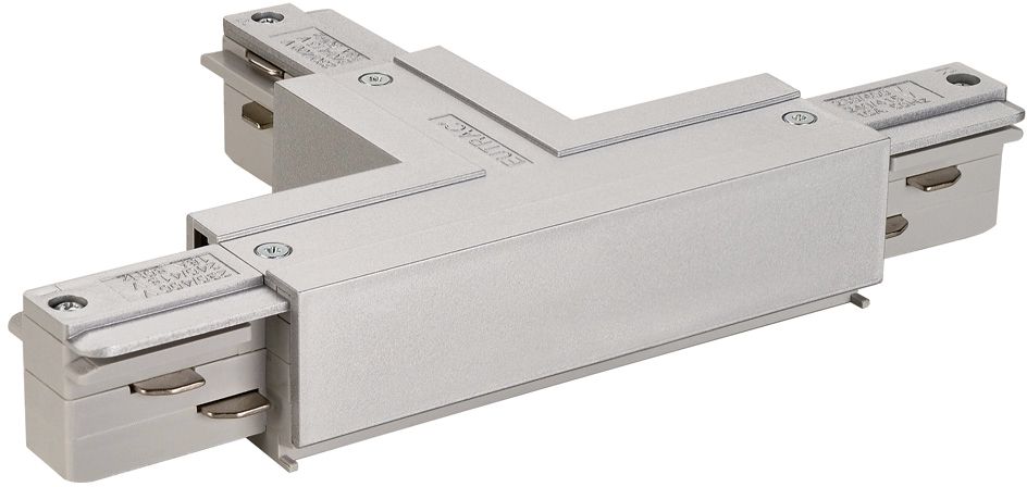 Starrer Verbinder für das Hochvolt 3Phasen-Aufbauschienen-System. Der in mehreren Farbversionen verfügbare Verbinder ermöglicht ein elektrisches Einspeisen innerhalb der Verbindung.