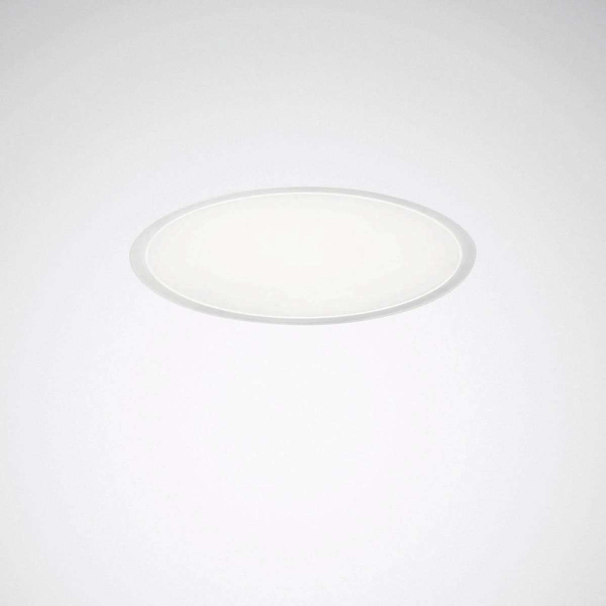 LED-Downlight für Decken mit einem Hohlraummaß = 36 mm. Geeignet zur Anwendung in HACCP, IFS und/oder BRC Global Standard Food zertifizierten Unternehmen. Einbau-Downlight für gesägte Deckenöffnungen. Einbau in gegossene Betondecken mittels Zubehör. Werkzeugloser Deckeneinbau durch Schnellmontagefedern. Deckenausschnitt Ø 300 mm, Einbautiefe 36 mm. Abdeckscheibe aus transluzentem PMMA. Mit lambertscher Lichtstärkeverteilung. Ausstrahlungswinkel 95°. Mit vorwiegend direkt strahlender Lichtstärkeverteilung. Erhöhter Beleuchtungskomfort durch dekorative Deckenaufhellung. Harmonische Lichtwirkung durch gleichmäßig ausgeleuchteten Lichtaustritt. Leuchtenlichtstrom und Lichtfarbe fest eingestellt. Bemessungslichtstrom 2000 lm, Bemessungsleistung 15 W, maximale Leuchten-Lichtausbeute 133 lm/W. Lichtfarbe neutralweiß, ähnlichste Farbtemperatur (CCT) 4000 K, allgemeiner Farbwiedergabeindex (CRI) Ra > 80. Farborttoleranz (initial MacAdam) = 3 SDCM. Mittlere Bemessungslebensdauer L80 (tq 25 °C) = 70.000 h. Die Lichtquelle ist entsprechend der Ökodesign-Anforderungen (VO (EU) 2019/2020) austauschbar. Flimmern: Pst LM = 1,0 bei Volllast. Stroboskop-Effekt: SVM = 0,4 bei Volllast. Leuchtenkörper aus Aluminiumdruckguss. Oberfläche weiß beschichtet (ähnlich RAL 9016). Leuchtendurchmesser Ø 316 mm, Leuchtenhöhe 42 mm. Schutzklasse (EN 61140): II, Schutzart (DIN EN 60529): IP20, Schutzart raumseitig: IP54, Stoßfestigkeitsgrad nach IEC 62262: IK06, Prüftemperatur Glühdrahttest gemäß IEC 60695-2-11: 650 °C. Zulässige Umgebungstemperatur (ta): -20 °C bis 25 °C. Gewicht: 1,4 kg. Mit externem Betriebsgerät, schaltbar. Das Betriebsgerät ist entsprechend der Ökodesign-Anforderungen (VO (EU) 2019/2020) austauschbar. Das Produkt erfüllt die grundlegenden Anforderungen der anwendbaren EU-Richtlinien und des Produktsicherheitsgesetzes und trägt die CE-Kennzeichnung. Zusätzlich ist die Leuchte durch eine unabhängige Prüfstelle ENEC-zertifiziert. Leuchte 10 Jahre, Ersatzteile (LED-Modul, Betriebsgerät, optisches System) 15 Jahre nach Rechnungsdatum unter Vorbehalt vertretbarer Änderungen, die