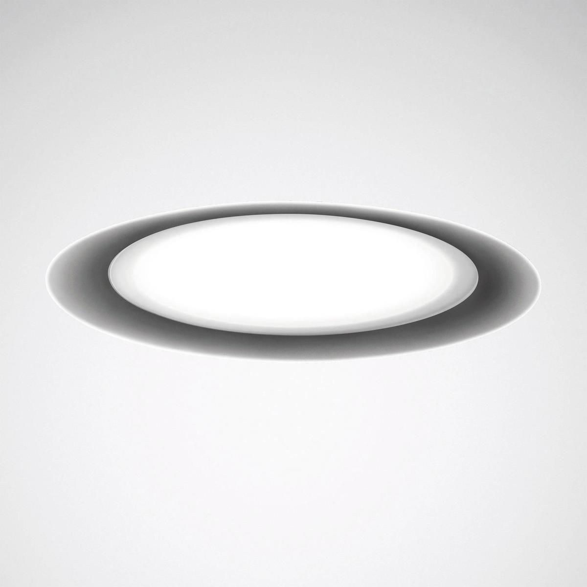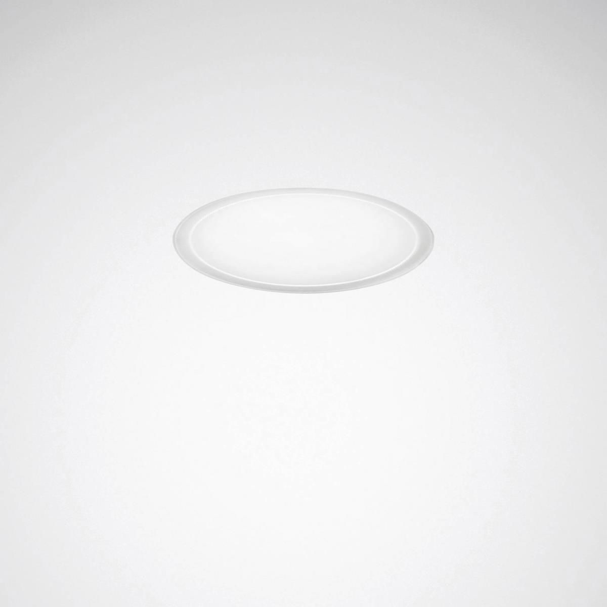 LED-Downlight für Decken mit einem Hohlraummaß = 36 mm. Geeignet zur Anwendung in HACCP, IFS und/oder BRC Global Standard Food zertifizierten Unternehmen. Einbau-Downlight für gesägte Deckenöffnungen. Einbau in gegossene Betondecken mittels Zubehör. Werkzeugloser Deckeneinbau durch Schnellmontagefedern. Deckenausschnitt Ø 215 mm, Einbautiefe 36 mm. Abdeckscheibe aus transluzentem PMMA. Mit lambertscher Lichtstärkeverteilung. Ausstrahlungswinkel 104°. Mit vorwiegend direkt strahlender Lichtstärkeverteilung. Erhöhter Beleuchtungskomfort durch dekorative Deckenaufhellung. Harmonische Lichtwirkung durch gleichmäßig ausgeleuchteten Lichtaustritt. Leuchtenlichtstrom und Lichtfarbe fest eingestellt. Bemessungslichtstrom 1200 lm, Bemessungsleistung 9 W, maximale Leuchten-Lichtausbeute 133 lm/W. Lichtfarbe neutralweiß, ähnlichste Farbtemperatur (CCT) 4000 K, allgemeiner Farbwiedergabeindex (CRI) Ra > 80. Farborttoleranz (initial MacAdam) = 3 SDCM. Mittlere Bemessungslebensdauer L80 (tq 25 °C) = 70.000 h. Die Lichtquelle ist entsprechend der Ökodesign-Anforderungen (VO (EU) 2019/2020) austauschbar. Flimmern: Pst LM = 1,0 bei Volllast. Stroboskop-Effekt: SVM = 0,4 bei Volllast. Leuchtenkörper aus Aluminiumdruckguss. Oberfläche weiß beschichtet (ähnlich RAL 9016). Leuchtendurchmesser Ø 234 mm, Leuchtenhöhe 42 mm. Schutzklasse (EN 61140): II, Schutzart (DIN EN 60529): IP20, Schutzart raumseitig: IP54, Stoßfestigkeitsgrad nach IEC 62262: IK06, Prüftemperatur Glühdrahttest gemäß IEC 60695-2-11: 650 °C. Zulässige Umgebungstemperatur (ta): -20 °C bis 25 °C. Gewicht: 0,9 kg. Mit externem Betriebsgerät, schaltbar. Das Betriebsgerät ist entsprechend der Ökodesign-Anforderungen (VO (EU) 2019/2020) austauschbar. Das Produkt erfüllt die grundlegenden Anforderungen der anwendbaren EU-Richtlinien und des Produktsicherheitsgesetzes und trägt die CE-Kennzeichnung. Zusätzlich ist die Leuchte durch eine unabhängige Prüfstelle ENEC-zertifiziert. Leuchte 10 Jahre, Ersatzteile (LED-Modul, Betriebsgerät, optisches System) 15 Jahre nach Rechnungsdatum unter Vorbehalt vertretbarer Änderungen, die