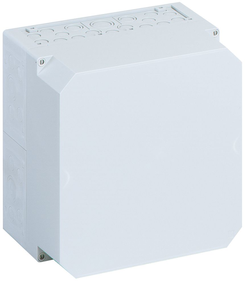 Leergehäuse, mit Schutzart IP65, Polycarbonat, glasfaserverstärkt, Ui=690V AC, Ui=1000V DC, innenliegende Befestigungsstellen, für Installationen im industriellen Umfeld und geschütztem Außenbereich, Kasten: Polycarbonat, glasfaserverstärkt, Deckel: Polycarbonat, transparent, Ausschlagmembranen, M20/M25/M32/M40, (56 seitlich) Abmessungen: 300 x 300 x 132mm Beigefügtes Zubehör: 10 Doppelmembranstutzen IP66 M20 Dichtbereich 7-12mm, 2 Doppelmembranstutzen IP66 M25 Dichtbereich 9-16mm, 2 Doppelmembranstutzen M32 Dichtbereich 14-21mm, 1 Doppelmembranstutzen IP66 M40 Dichtbereich 19-28mm