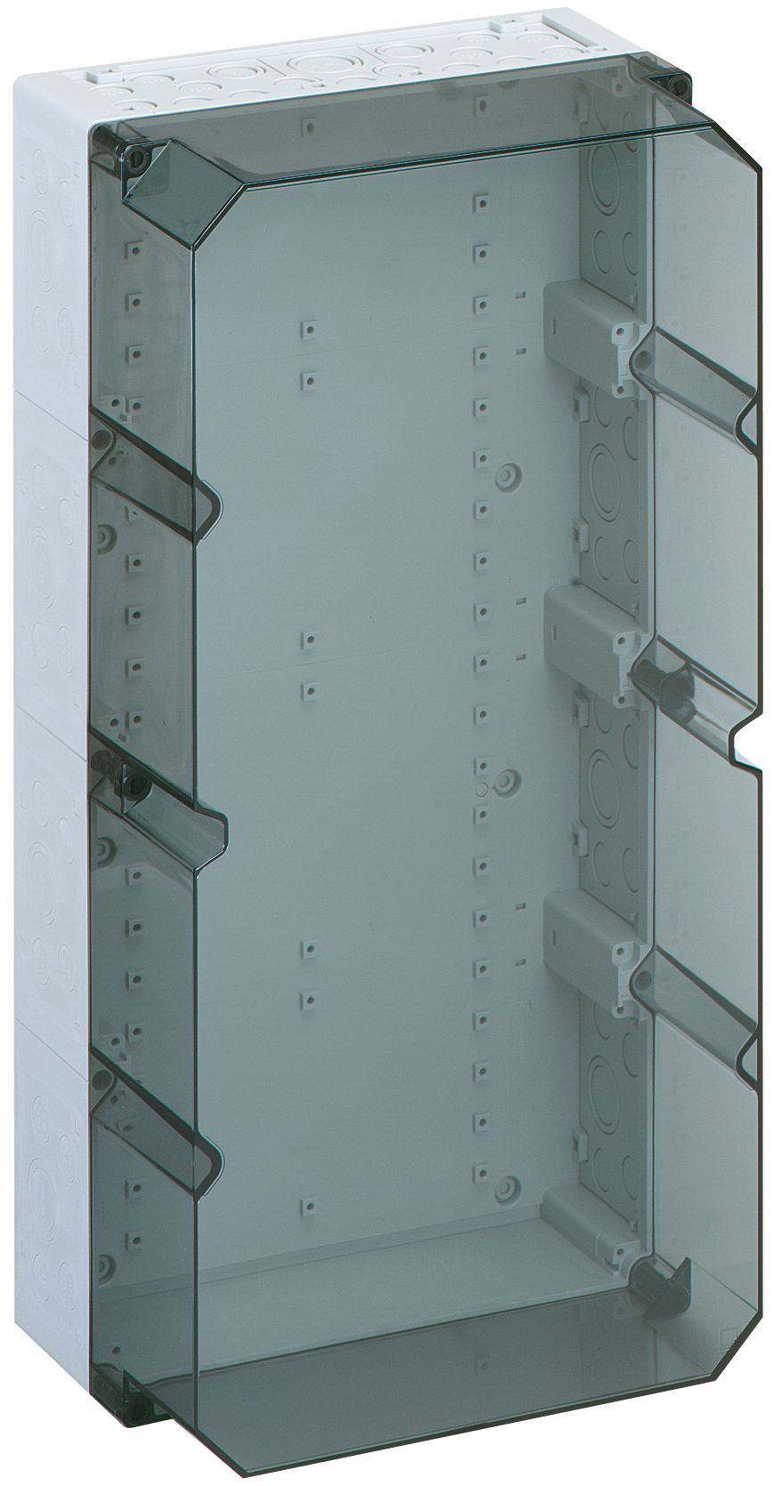 Leergehäuse, mit Schutzart IP65, Polystyrol, Ui=690V AC, Ui=1000V DC, innenliegende Befestigungsstellen, für Standardinstallationen im Innenbereich, Kasten: Polystyrol, Deckel: Polystyrol, grau, Ausschlagmembranen, M20/M25/M32/M40, (76 seitlich) Abmessungen: 300 x 600 x 132mm Beigefügtes Zubehör: 10 Doppelmembranstutzen IP66 M20 Dichtbereich 7-12mm, 2 Doppelmembranstutzen IP66 M25 Dichtbereich 9-16mm, 2 Doppelmembranstutzen M32 Dichtbereich 14-21mm, 1 Doppelmembranstutzen IP66 M40 Dichtbereich 19-28mm