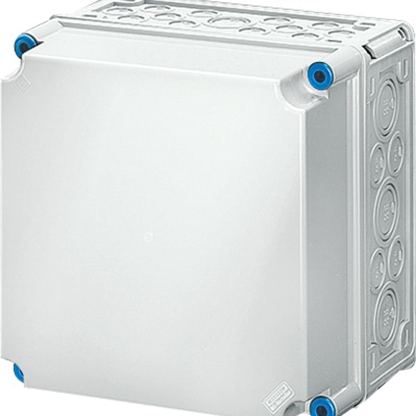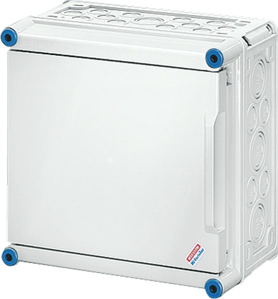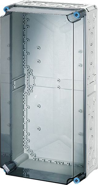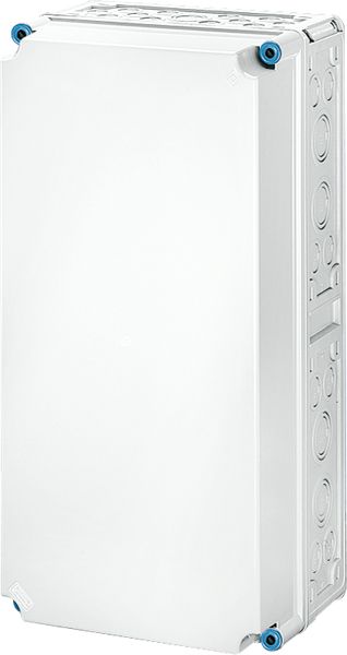 Gehäuse für den Bau von Energie-Schaltgerätekombinationen bis 630 A oder als Einzelgehäuse. Aus hochwertigem Polycarbonat schutzisoliert. Wanddurchführungen mit großen Öffnungen für die elektrische Verbindung der Gehäuse untereinander. Kabeleinführung an allen Gehäusewänden über metrische Vorprägungen oder Anbauflansche. Gehäuse zur Wandbefestigung auch über Außenlaschen oder mit Montageschienen. Leergehäuse mit nicht durchsichtigem Deckel. Einbaumaße B 275 x H 575 x T 150 mm für den Einbau von Geräten auf Montageplatte oder DIN-Tragschiene. Max. Einbautiefe bei eingebauter Montageplatte 146 mm, bei eingebauter Tragschiene 135 mm. Deckelverschlüsse mit Werkzeugbetätigung.