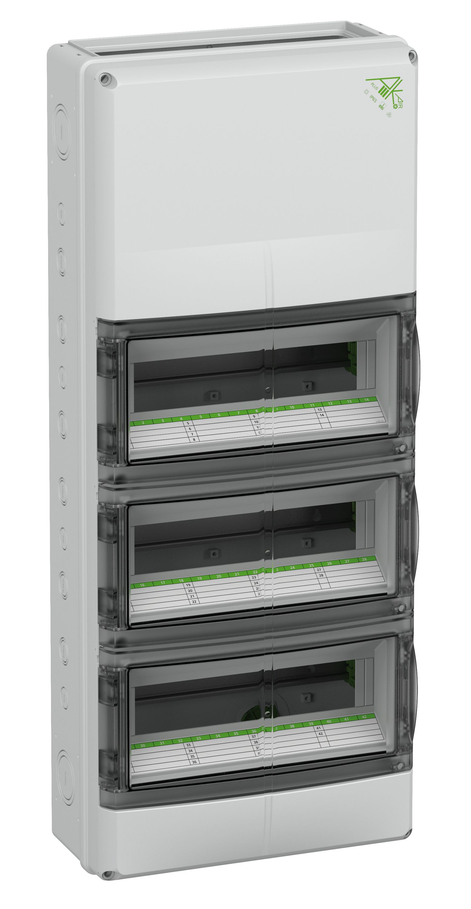 Leergehäuse, mit Schutzart IP65, Kunststoff, zertifiziert durch DLG (Ammoniakbeständigkeit), Ui=1000V AC, Ui=1500V DC, für Kleinverteiler AK 14-56 zum individuellen Ausbau mit Normschienen oder Montageplatte, Kasten: Kunststoff, grau, Deckel: Polycarbonat, grau, oben und unten offene Stirnflächen zur Montage von verschiedenen Flanschen oder zur Kombination mehrerer AK-F Gehäuse mittels Kombiflansch Abmessungen: 315 x 300 x 147mm Beigefügtes Zubehör: Doppelmembranstutzen: 1x M16, 5x M20, 2x M25, 1x M32, 1x M40, Verschlussstopfen, Abdeck- und Beschriftungsstreifen