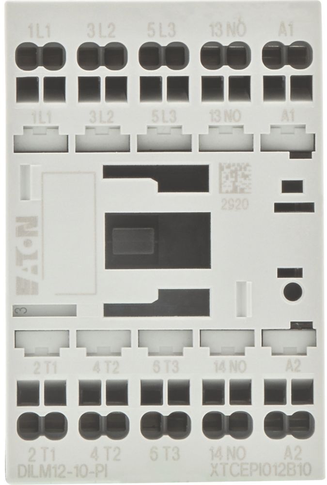 Leistungsschütz, Anwendung: Leistungsschütze für Motoren, Schütze bis 170 A, 3-polig, Gebrauchskategorie: AC-1: Nicht oder leicht induktive Lasten, Widerstandsöfen, NAC-3: Käfigläufermotoren: anlassen, während Betrieb ausschalten, AC-4: Käfigläufermotoren: anlassen, Einstecken, reversieren, Tippen, Anschlusstechnik: Schraubklemmen, Hinweise: Geeignet auch für Motoren der Effizienzklasse IE3., IE3-fähige Geräte sind mit dem Logo auf der Verpackung gekennzeichnet., Anzahl der Pole: 3-polig, Bemessungsbetriebsstrom AC-3, 380 V, 400 V: Ie= 12 A, Bemessungsbetriebsstrom AC-1 konventioneller thermischer Strom, 3-polig