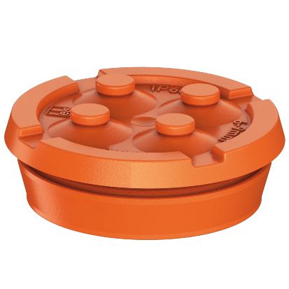 Doppelmembranstutzen, IP66, mit zwei Dichtungsmembranen, geschlossen, max. vier Leitungseinführungen für Steuerleitungen, thermoplastisches Elastomer (TPE), für Wandstärken 1,5-4,5mm, orange, Dichtbereich 3,5-6mm pro Einführung Abmessungen: 36,7 x 12,9 x 36,7mm