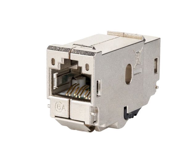 RJ45 Kabelkupplung Klasse E, AEinhaltung der Klasse E, A nach ISO/IEC 11801, DIN EN 50173-1für 10 GBit/s Ethernet (IEEE 802.3an), Remote Powering (PoE, PoE plus, UPoE und 4PPoE), HDBaseT, SAT-IP und AV over IP geeignet, vollgeschirmte 180° Kupplung aus Zinkdruckguss, veredelt, besonders geeignet für Consolidation Points und Cross-Connect Verkabelungen, 2 Einbauformen in einer Kupplung, zum Einbau in Modul- oder Keystone-Applikationen , Einbauform Modul: Modul Anschlussdosen, Modul Abdeckplatten, 19 Zoll Modulträger, E-DAT modul REG, Modul REG IP20, Industry Einbauflansch EBM , Einbauform Keystone: Keystone Anschlussdosen, Keystone Abdeckplatten, 19 Zoll Modulträger für Keystone, Keystone AP-Gehäuse, Unterflur Subway Keystone, Keystone REG IP20, Industry
