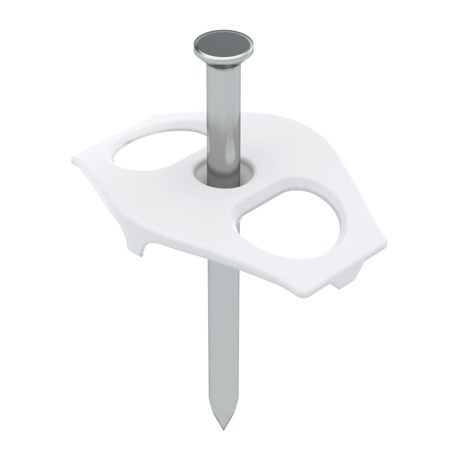 Nagelscheibe zur temporalen Fixierung von Leitungen in Mauernuten / Mauerschlitzen. Mit vormontiertem Stahlnagel Ø 3,0 und 3,5 mm, zur Fixierung von Leitungen in Mauerschlitzen und auf Mauerwerk für: 1 bzw. 2 Leitungen NYM 3undefined1,5/2,5 mm² oder 1 bzw. 2 Leitungen NYM 5undefined1,5/2,5 mm². Material: Polypropylen, halogenfrei, transparent. Nagel: Stahl, gehärtet. Galvanisch/elektrolytisch verzinkt.