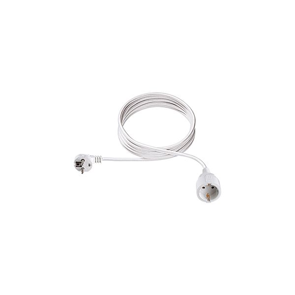 Netzanschlussleitung, Verlängerungskabel, Seite 1: Schutzkontakt-Winkelstecker, angespritzt. Seite 2: Schutzkontakt-Kupplung, angespritzt. Leitungstyp: H05VV-F 3G1,5 mm². PVC.