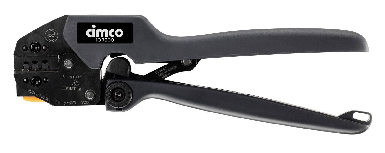 Click´n´Crimp Elektrotechnik, mit auswechselbaren Pressprofileinsätzen, die durch eine Rasthalterung im Zangenkörper fixiert werden, dadurch sekundenschneller Profilwechsel ohne Zuhilfenahme von weiterem Werkzeug. Zwei weitere im Einsatz stehende Pressprofile werden in den beiden integrierten Magazinhaltern der Zangenschenkel unverlierbar aufbewahrt. Zwei weitere Pressprofile werden in den Zangenschenkeln aufbewahrt. Zangenkörper aus starkem, spezial vergütetem, gehärtetem Stahlblech, stellbare Ratschenmechanik mit Zwangsentriegelung sorgt für normgerechten Pressdruck, ergonomische-2-Komponenten-Griffhüllen. Gewicht inkl. 3 Pressprofileinsätzen nur 690 g. Mit Pressprofileinsätzen, Artikelnummer 106010 (für nicht isolierte Kabelschuhe 0,5 mm² bis 10 mm²), 106011 (für nicht isolierte Kabelschuhe 0,5 mm² bis 10 mm²) und 106012(für Aderendhülsen von 0,5 mm² bis 10
