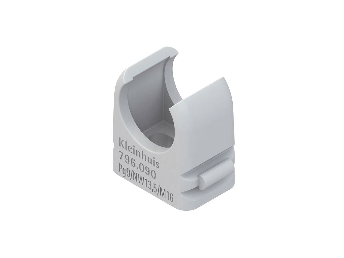 Rohrschelle aus Kunststoff, zur Montage von Leerrohren mit metrischem Durchmesser. Montage erfolgt über das Langloch mit Nageldübel / Schraube oder im Rahmen der Durchsteckmontage mit Steckdübel. Das Langloch bietet zudem die Möglichkeit einer Montagekorrektur. M16 - M40: Einschiebbar in C-Profilschienen mit 11mm Schlitzweite. Material: Polypropylen, halogenfrei. Anreihbar: M16 - M40. Langloch: 6 mm.