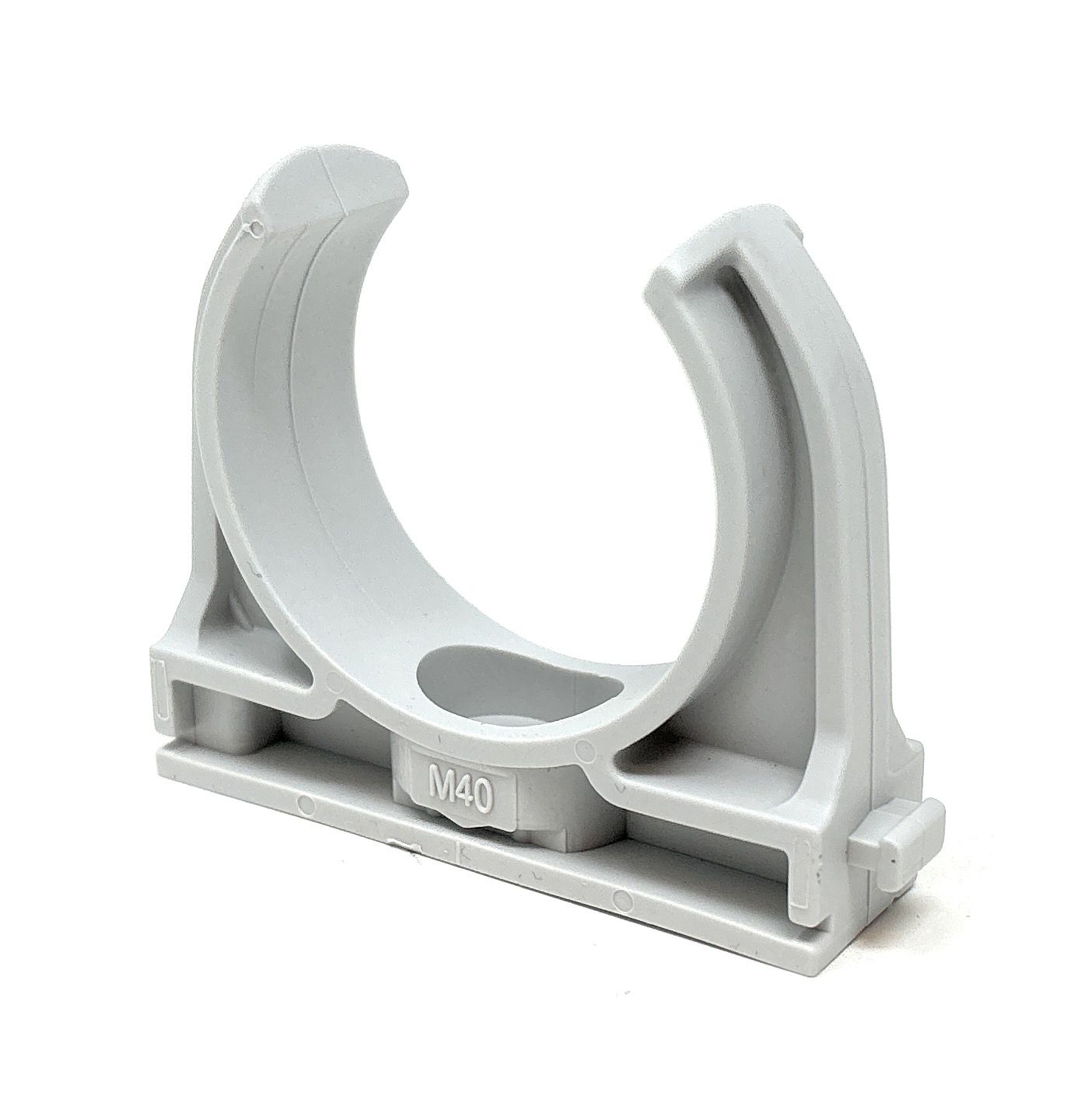Rohrschelle aus Kunststoff, zur Montage von Leerrohren mit metrischem Durchmesser. Montage erfolgt über das Langloch mit Nageldübel / Schraube oder im Rahmen der Durchsteckmontage mit Steckdübel. Das Langloch bietet zudem die Möglichkeit einer Montagekorrektur. M16 - M40: Einschiebbar in C-Profilschienen mit 11mm Schlitzweite. Material: Polypropylen, halogenfrei. Anreihbar: M16 - M40. Langloch: 6 mm.