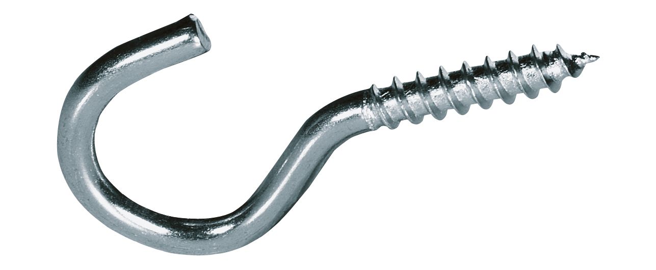 Schraubhaken mit gewalztem Holzschraubengewinde. Stahl, galvanisch / elektrolytisch verzinkt.