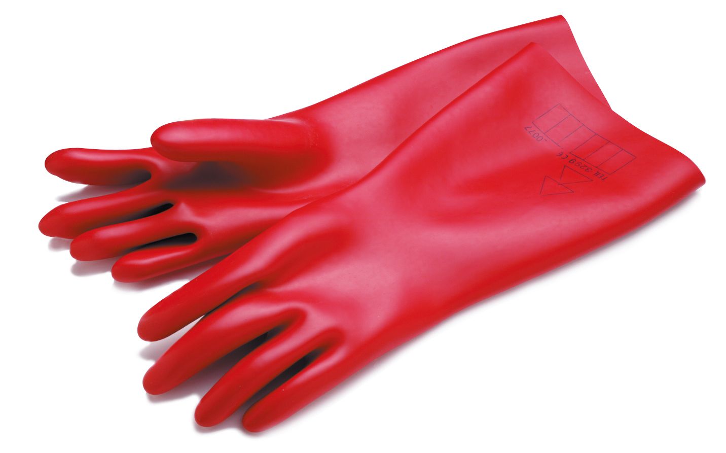 Schutzhandschuhe nach DIN EN 60903, Klasse 0, mit Prüfstempel für Arbeiten in Spannungsbereichen bis 1000 V, aus Naturlatex, anatomische Formgebung, beste Flexibilität.