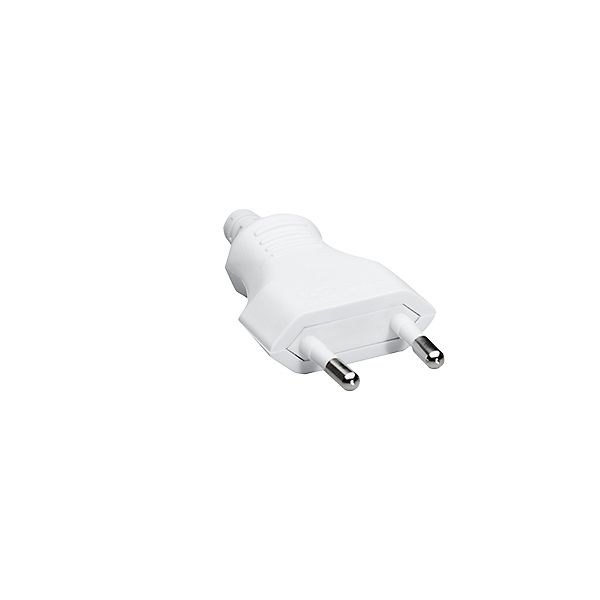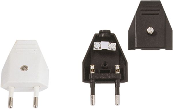 Schutzkontaktstecker, gerade, 2-polig, große Ausführung, mit doppeltem Schutzkontaktsystem, aus bruchfestem Kunststoff mit Zugentlastung und Knickschutzhülle, wiederanschließbar, Werkstoffgüte: Polyvinylchlorid (PVC). Für Anschlussleitung: H05VV-F 3G 0,75/1,0/1,5 mm², 16 A, 250 V.