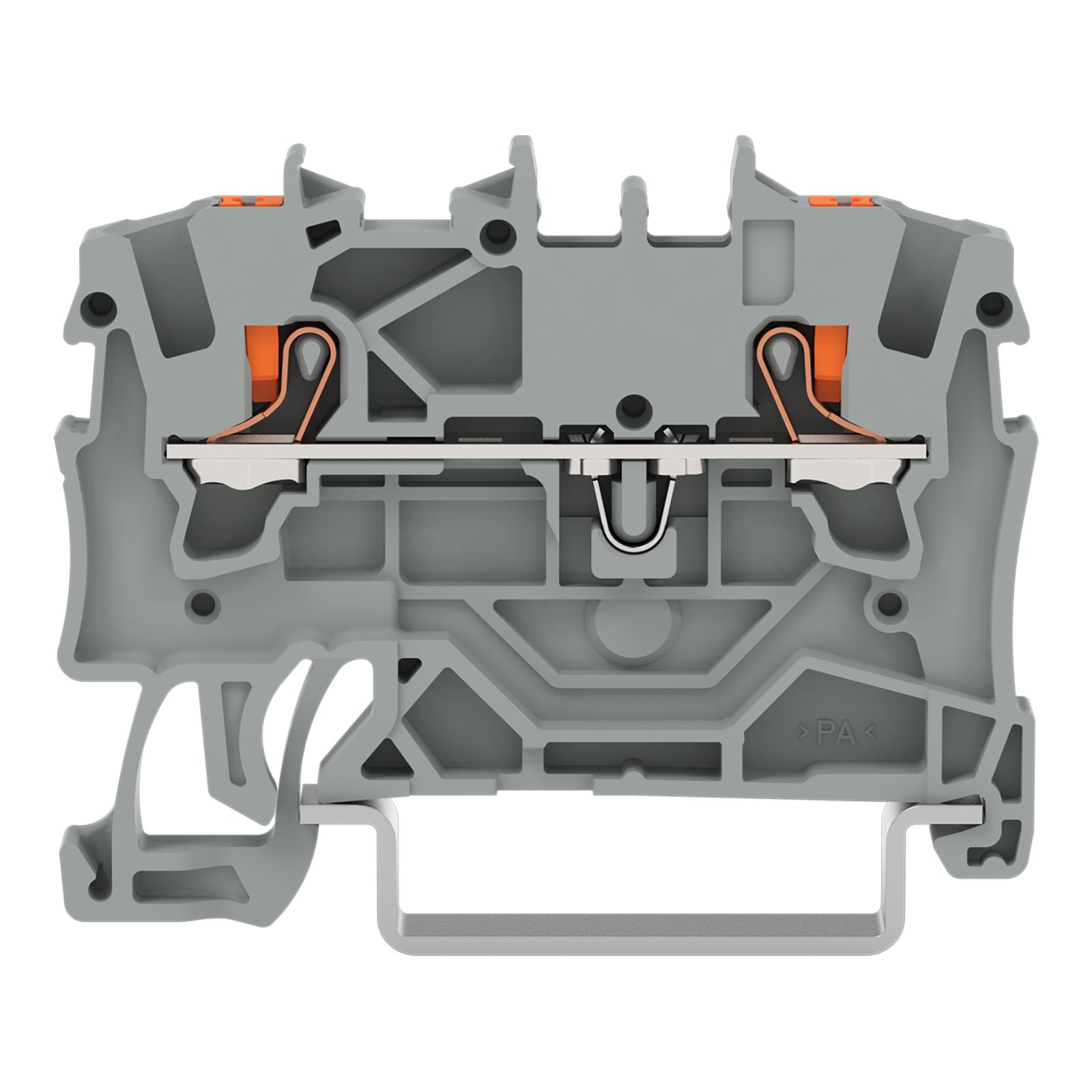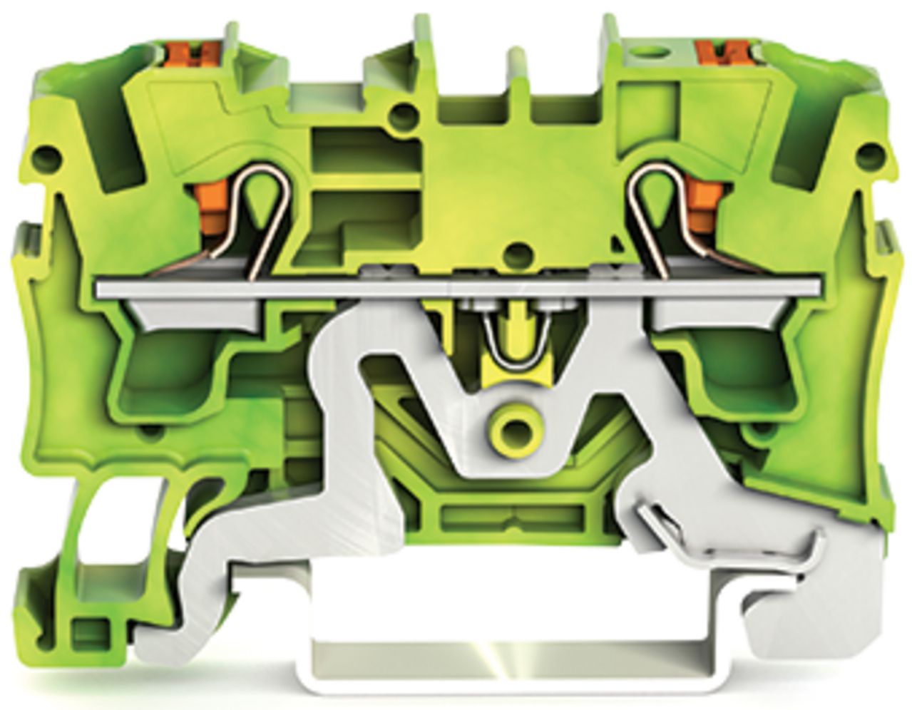 2-Leiter-Schutzleiterklemme: mit Drücker: 1,5 mm²: mit Prüföffnung: seitliche und mittige Beschriftung: für Tragschiene 35 x 15 und 35 x 7,5: Push-in CAGE CLAMP : 1,50 mm²: grün-gelb Schutzleiterklemme Serie 2201, grün-gelb Bei dieser Schutzleiterklemme mit der Artikelnummer 2201-1207 steht ein schneller und zuverlässiger Anschluss im Vordergrund. Diese Schutzleiterklemme benötigt für den Leiteranschluss eine Abisolierlänge zwischen 9 und 11 mm . Schutzleiterklemmen sind durch einen integrierten Kontaktfuß direkt mit der Tragschiene verbunden. Dadurch schaffen sie eine elektrische und mechanische Verbindung zwischen den elektrischen Leitern und der Befestigungsauflage. Bei diesem Produkt kommt die Push-in CAGE CLAMP -Technologie zum Einsatz. Die Push-in CAGE CLAMP Anschlusstechnik ist der Universalanschluss für alle Leiterarten mit dem Zusatznutzen des direkten Steckens. Starre Leiter sowie feindrähtige Leiter mit Aderendhülse können ohne Werkzeug direkt in die Klemmstelle gesteckt werden. Diese Schutzleiterklemme ist in Abhängigkeit von der Leiterart für Leiterquerschnitte von 0,25 mm² bis 2,5 mm² geeignet. Diese Durchgangsreihenklemme wird durch einen Drücker betätigt. TOPJOB S Reihenklemmen sorgen in diversen Industrieanwendungen sowie in der modernen Gebäudeinstallation für eine sichere elektrische Verbindung. Mit nur einem Reihenklemmensystem können Sie überall auf der Welt als auch in allen Anwendungen arbeiten. Dieses Produkt ist für bestimmte Ex-Anwendungen geeignet
