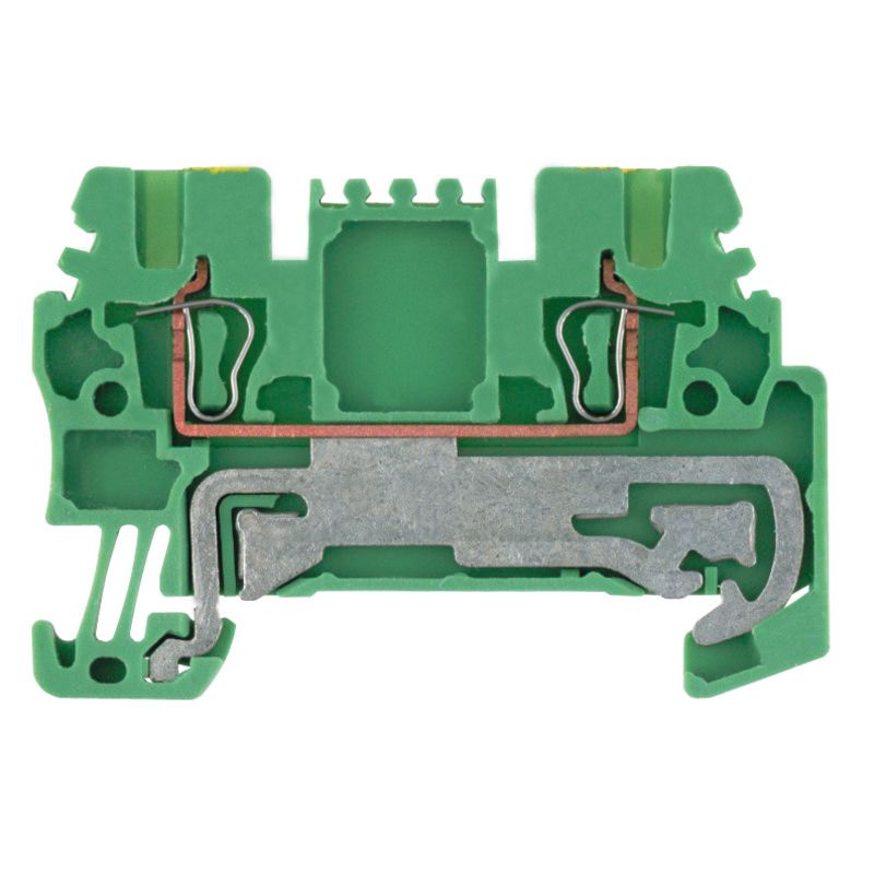 Reihenklemme zum Anschließen oder Verbinden von Schutzleitern mit der Befestigungsgrundlage (Erde). Gehärteter Stahl hält den mechanischen Kräften stand, Zinn-beschichtetes Kupfer sorgt für beste Leitfähigkeit.