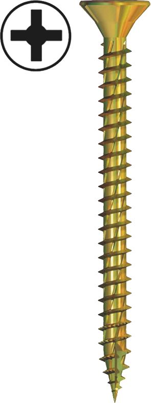 Stahl gehärtet, galvanisch verzinkt und hostaflonbeschichtet. Senkkopf mit Kreuzschlitz (Pozidrive Gr. 2 außer Ø 6 mm Pozidrive Gr. 3). Die Verwendung der SPRINT-Schrauben führt zu erheblich verkürzten Einschraubzeiten gegenüber herkömmlichen Schrauben. Bewirkt wird dieser spürbare Vorteil durch die Greifspitze mit dem 1. Gang, der auf das 2gängige Gewinde führt. Einsatzgebiete: Holz, Spanplatten, Rigips-Platten, Kunststoffdübel.