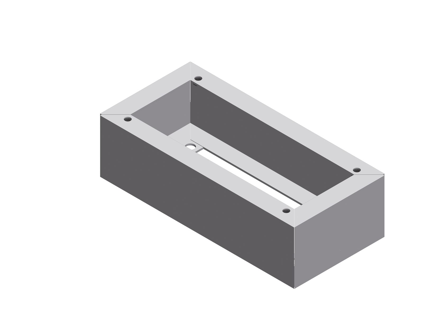 Der lange Einbausockel hat eine Einbauhöhe von 160 mm. Er ist für die Montage der Ladesäulen eMC2 geeignet, bei denen das Fundament im Boden versenkt ist.