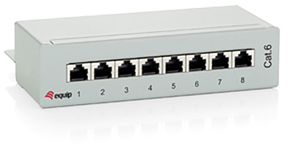 Patchpanel 8Ports Cat6 RAL7035 Desktop oder Wandmontage 44,5x160,3x109,2mm