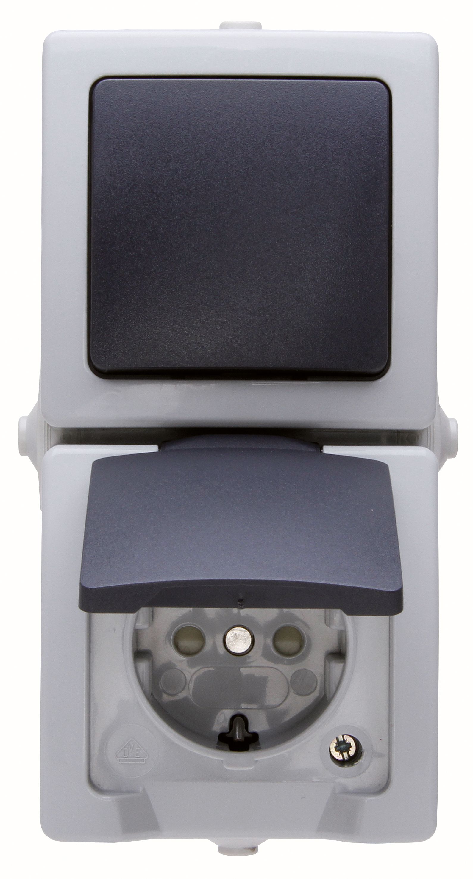 Kopp Steckdose 1f gr mt NAUTIC AP m.BS Klappd Mit erhöhtem Berührungsschutz abschl